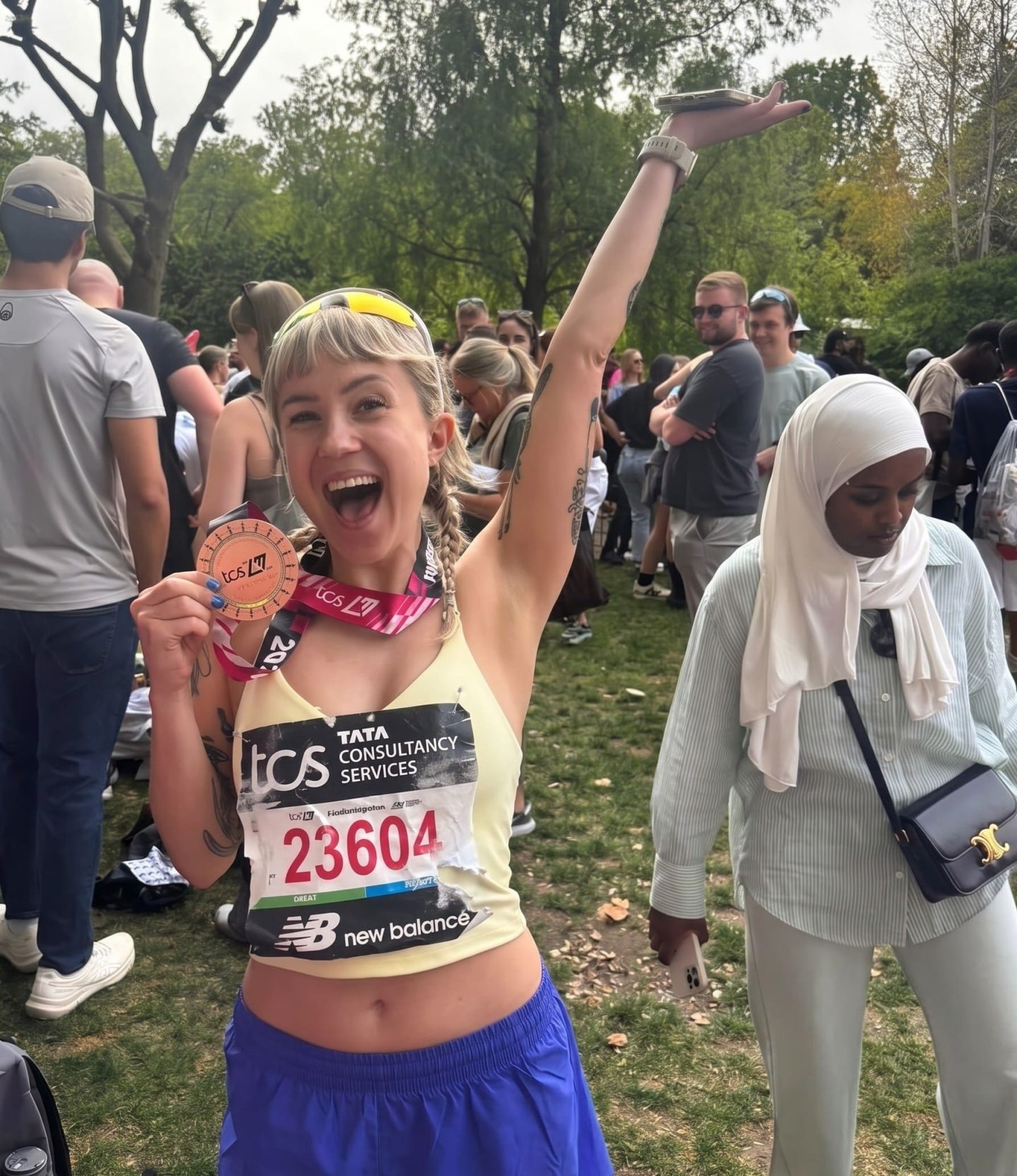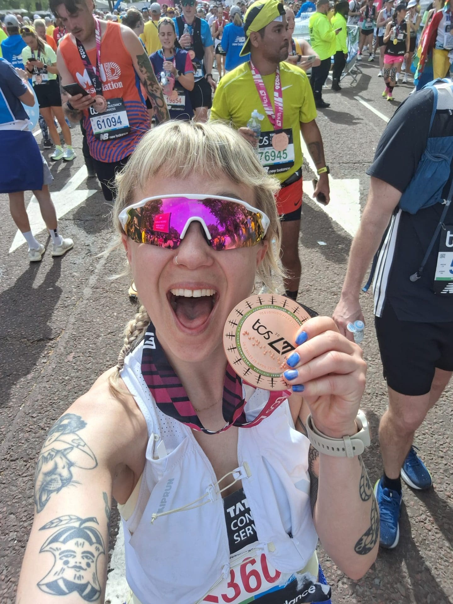 “It was a beautiful sunny day, but it did get surprisingly hot! I was grateful for the cold jet showers they had along the course. The crowds were unreal. The London Marathon really brings out the best in people, with everyone there to give you a boost. Seeing so many people running for causes close to their hearts was incredibly moving and inspirational.
